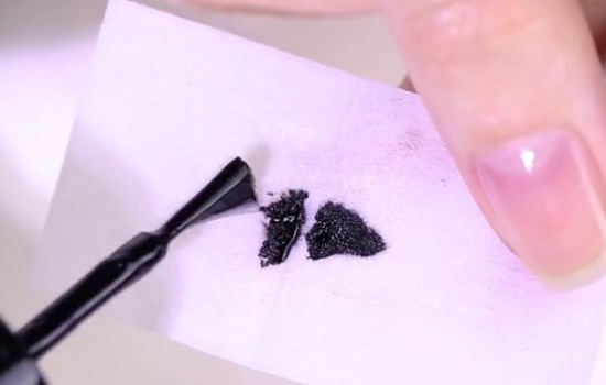 取出一片酒精棉,將黑色的甲油涂一點在酒精棉上。
