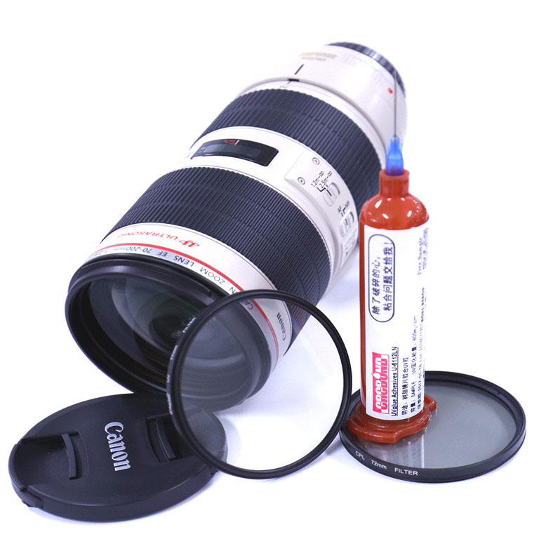 光學鏡頭UV膠是單組分UV可見光固化改性丙烯酸酯結構膠。該產品粘度適中,便于操作,專門為光學儀器粘結而設計。當該產品暴露于350-420nm的紫外光下就會在數秒內固化成一種耐沖擊、柔韌性的膠層,該膠層具有優異的耐長期濕度或耐水浸以及耐候性,低收縮率,好的折射率和透光度,粘接強度高,固化速度快,膠水的折射率與光學鏡頭折射率的一致性保證了很好的光學效果。